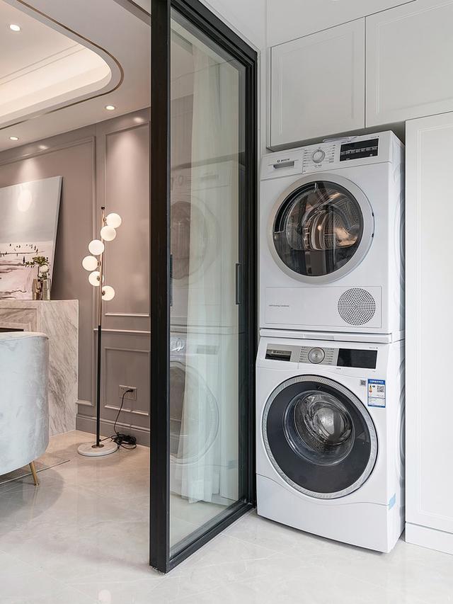 阳台不再只是晾衣服的处所,要处理晾衣服的题目,能够挑选烘干机,如许阳台上就不必挂满衣服了,摆放洗衣机的处所,定制定制一个洗衣机柜,把洗衣机嵌入出来,洗衣机柜上方空间,也能够操纵来储物,增添收纳空间,都雅又适用!